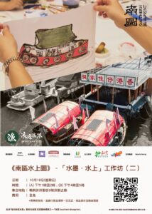 透過在蒲窩青少年中心及「舢舨」舉行「水墨.水上」工作坊,讓居民以水墨繪畫他們對南區的印象,例如南區的舢舨、小店、公園、山水風景等等,再把畫作整合成連綿的《南區水上圖》(簡稱南圖)於蒲窩青少年中心展示,本提案希望呈現眾人心目中的南區,描繪香港仔和鴨脷洲「兩岸」的人文風景,並喚醒大家對這地方的回憶與想象。