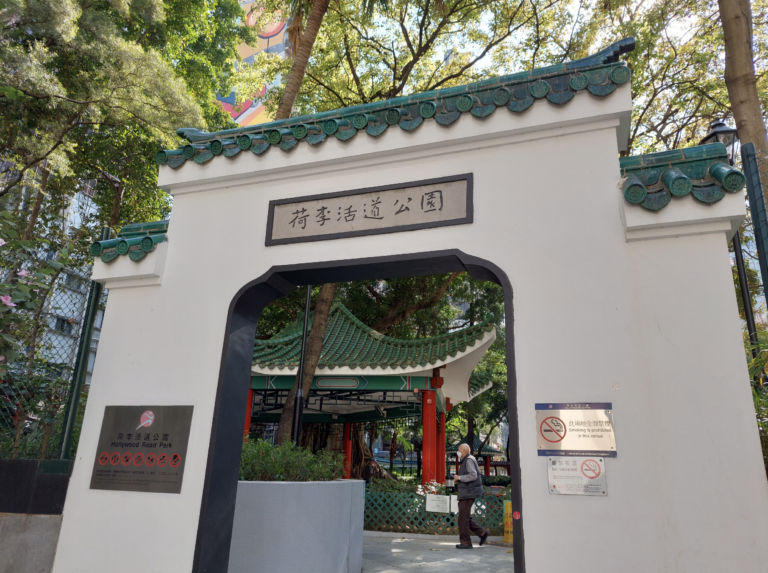 1841年1月26日,英軍於上環水坑口登陸後,其佔領及插上英國旗的地方就是今天荷李活道公園。荷李活道公園曾經是被稱為「平民夜總會」的大笪地所在位置。