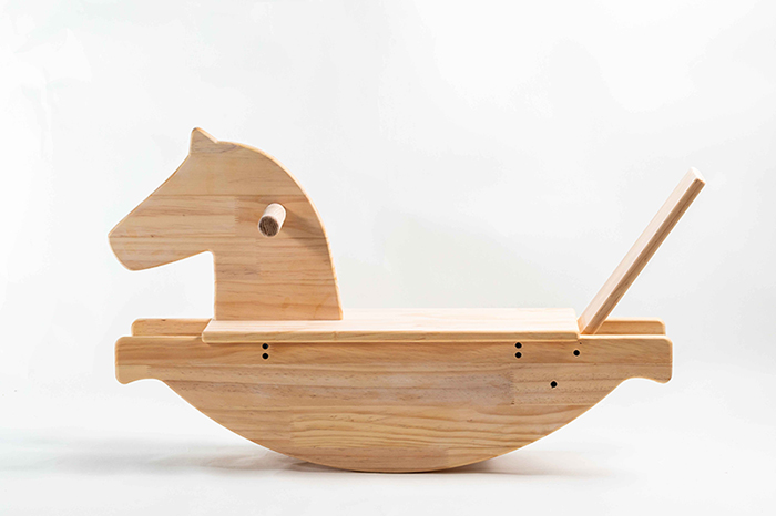 以細緻的工法,製作舒適、穩固及造型可愛的小木馬,適合留在家中的兒童玩樂。